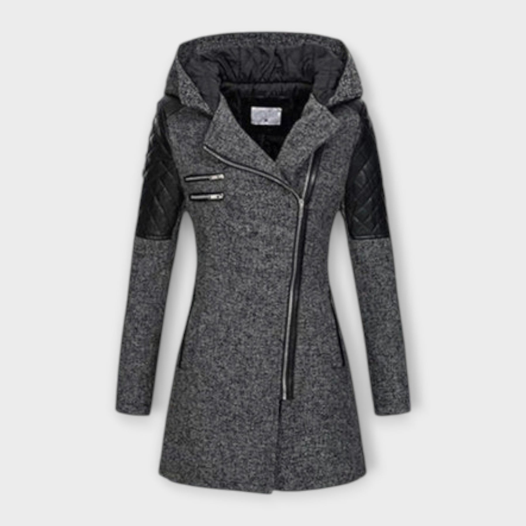 • Detalje-Fokuseret Finish: Asymmetrisk lynlås, praktiske lommer og stilfuld ærmekontrast løfter straks dit vinterlook.